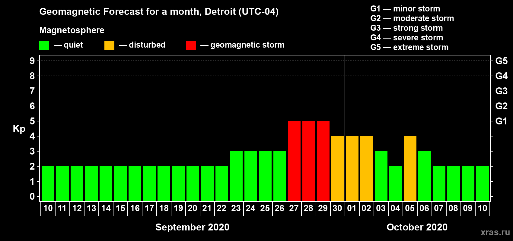 Geomagnetic storm forecast in Detroit for Sep 10, 2020