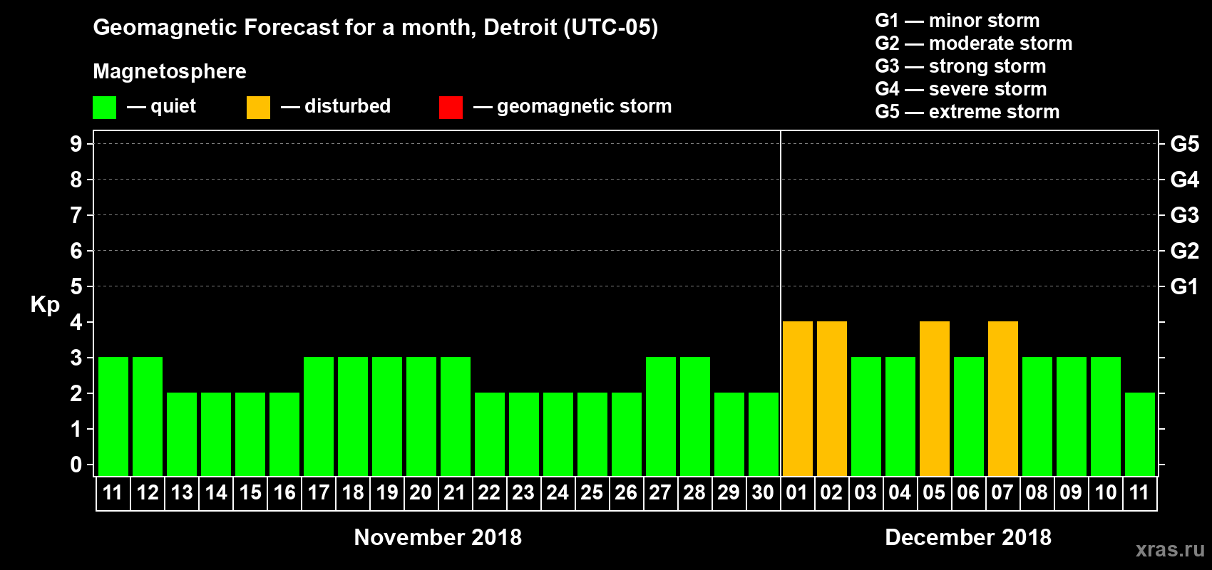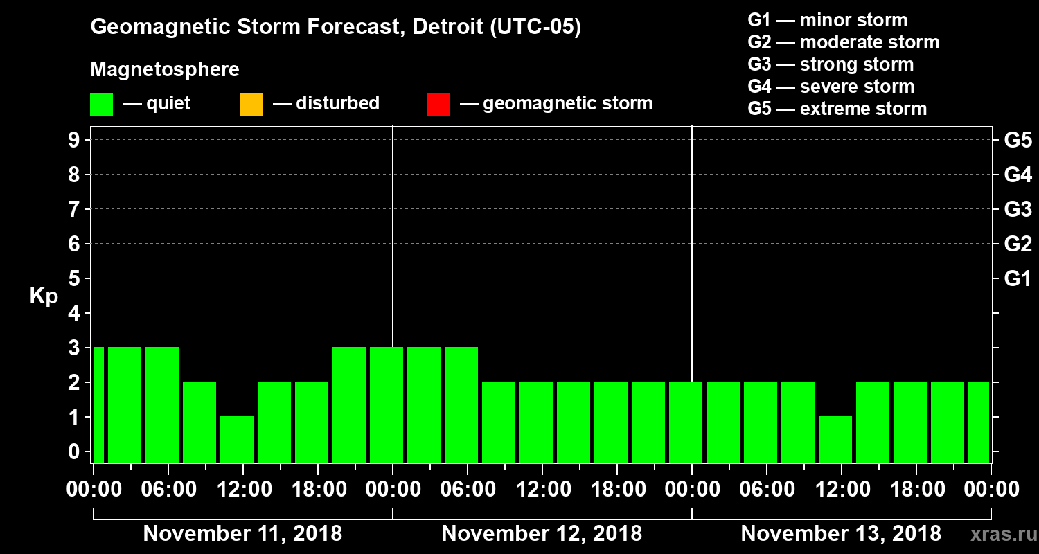 Geomagnetic storm forecast in Detroit for Nov 11, 2018