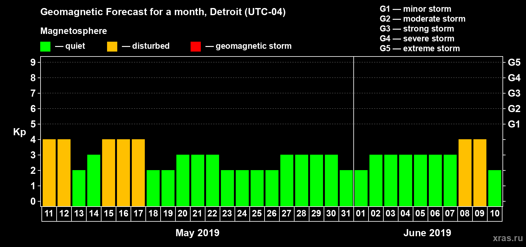 Geomagnetic storm forecast in Detroit for May 11, 2019