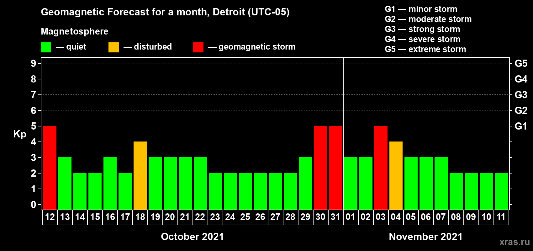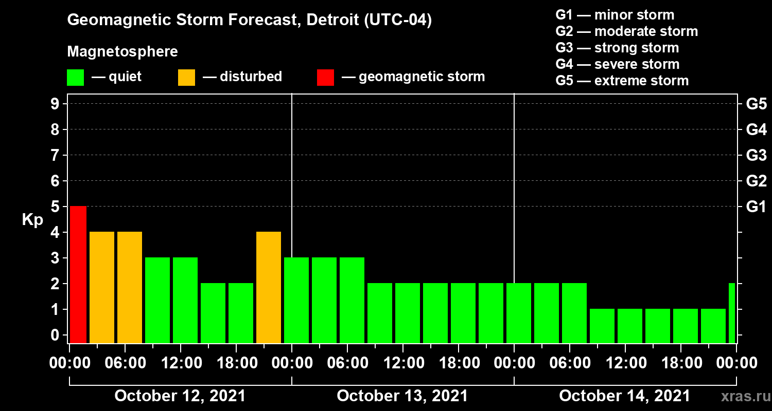 Geomagnetic activity forecast in Detroit — Oct 12, 2021
