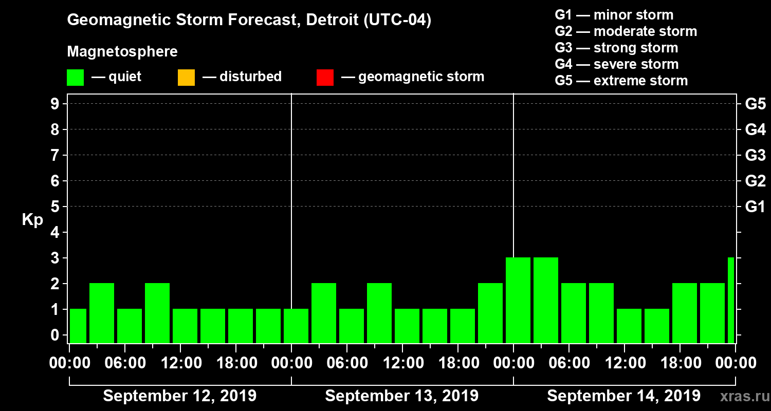 Geomagnetic storm forecast in Detroit for Sep 12, 2019