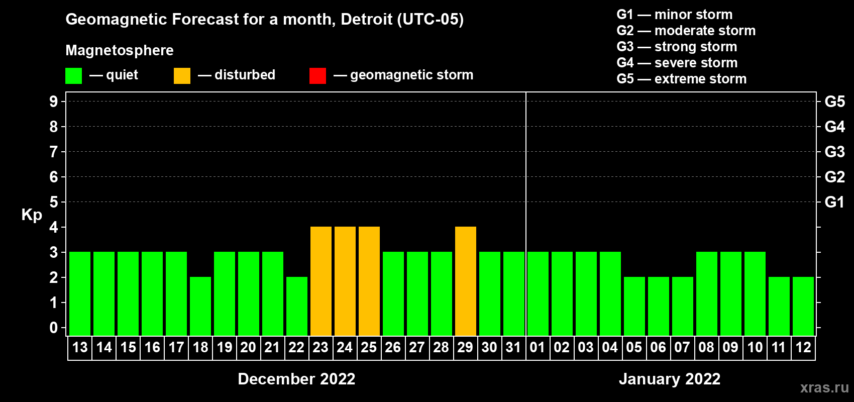 Geomagnetic storm forecast in Detroit for Dec 13, 2021