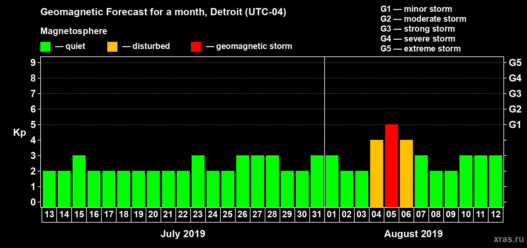 Geomagnetic storm forecast in Detroit for Jul 13, 2019