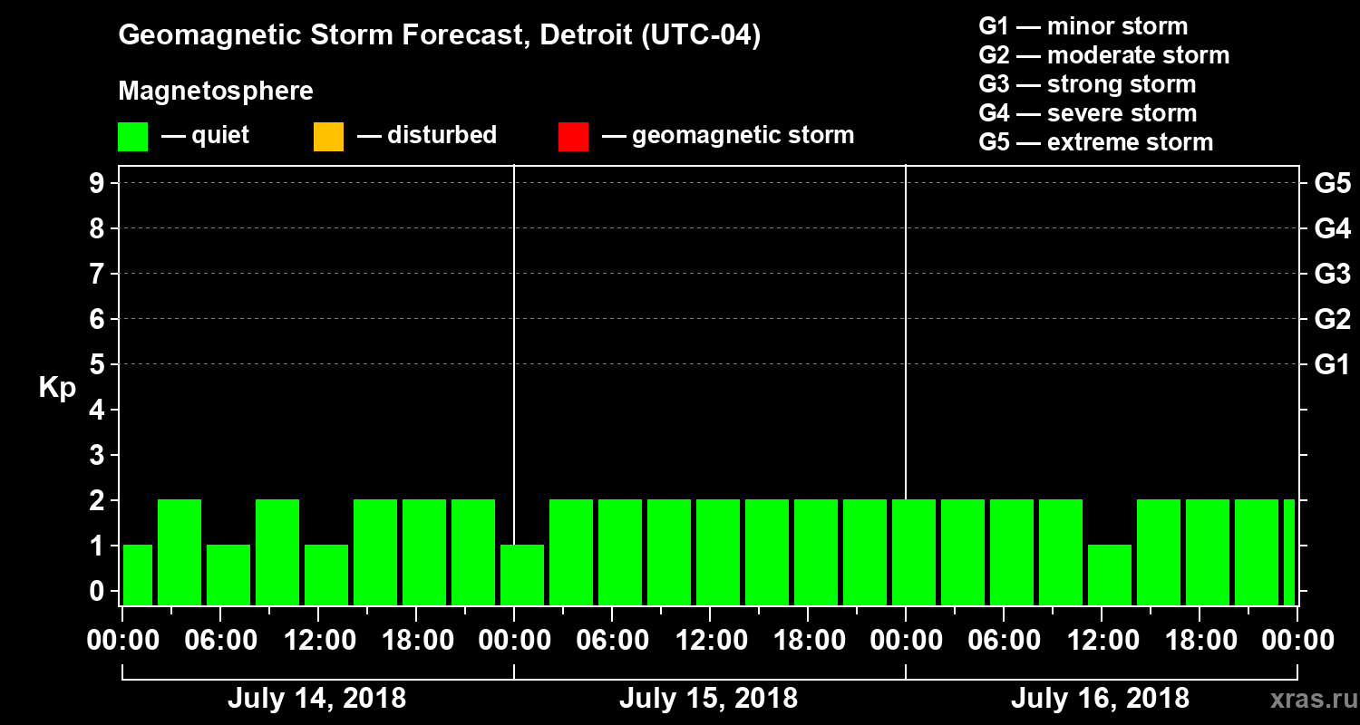 Geomagnetic storm forecast in Detroit for Jul 14, 2018