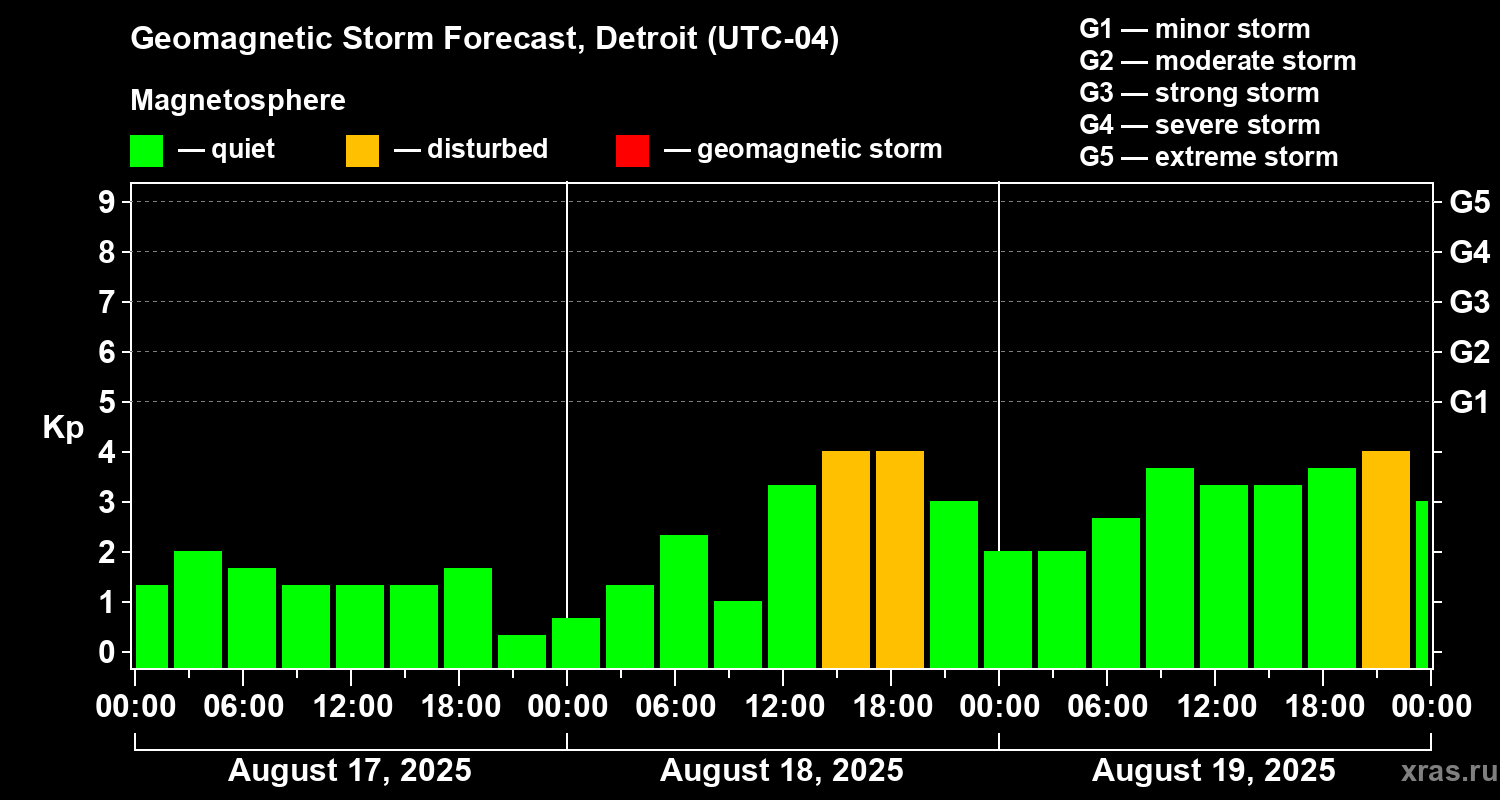 Geomagnetic storm forecast in Detroit for Aug 17, 2025