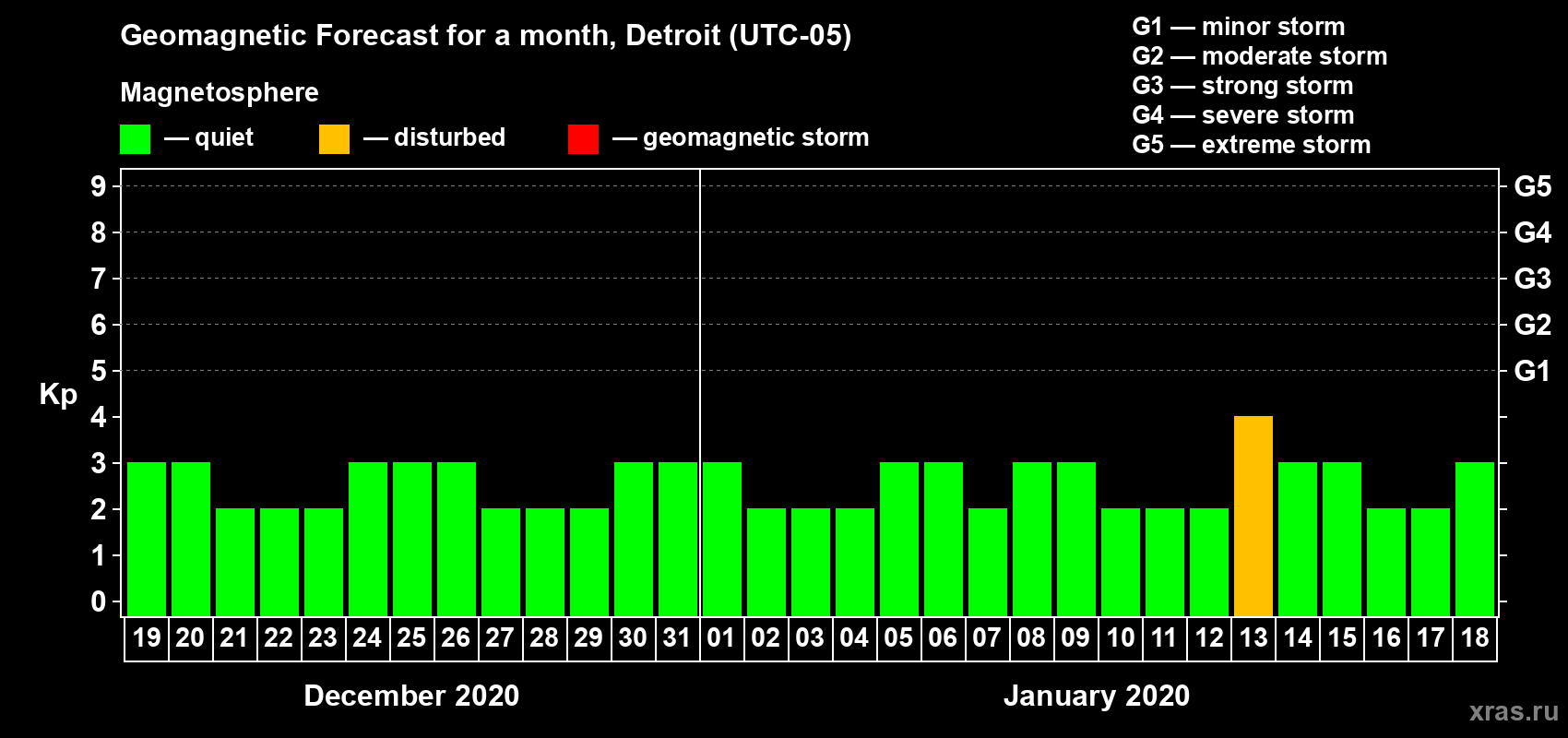 Geomagnetic storm forecast in Detroit for Dec 19, 2019