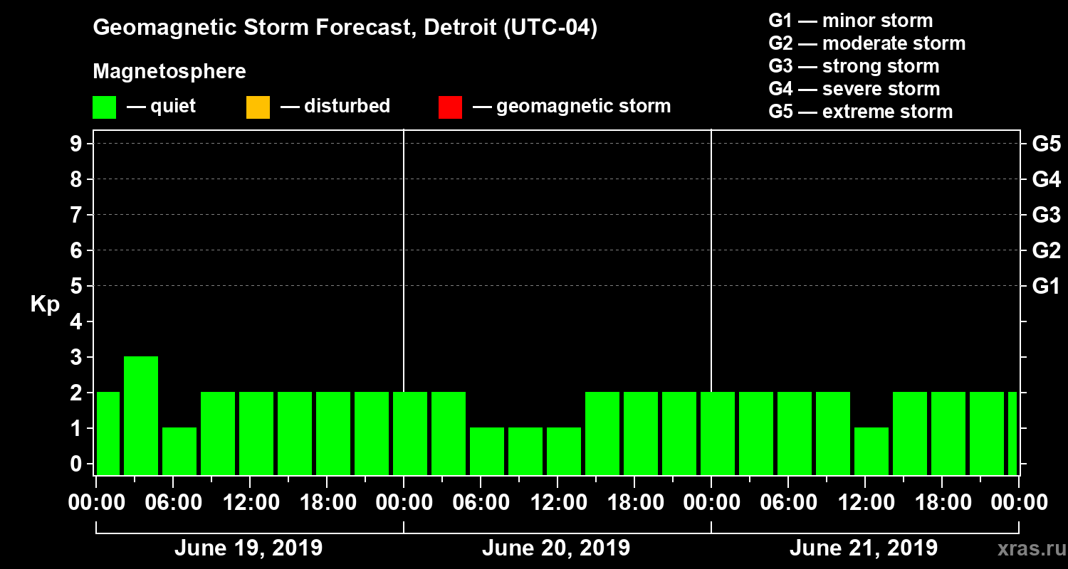 Geomagnetic storm forecast in Detroit for Jun 19, 2019