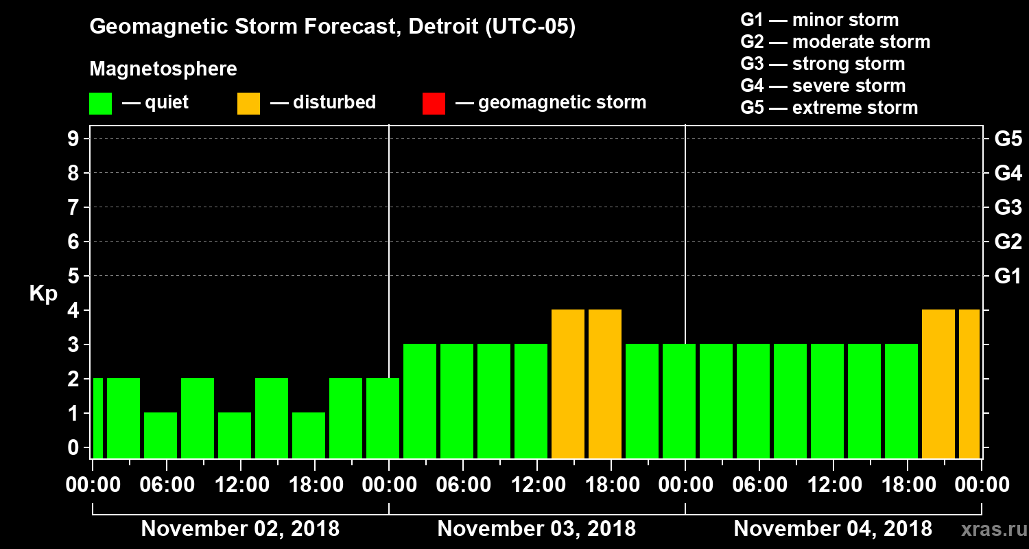 Geomagnetic storm forecast in Detroit for Nov 02, 2018
