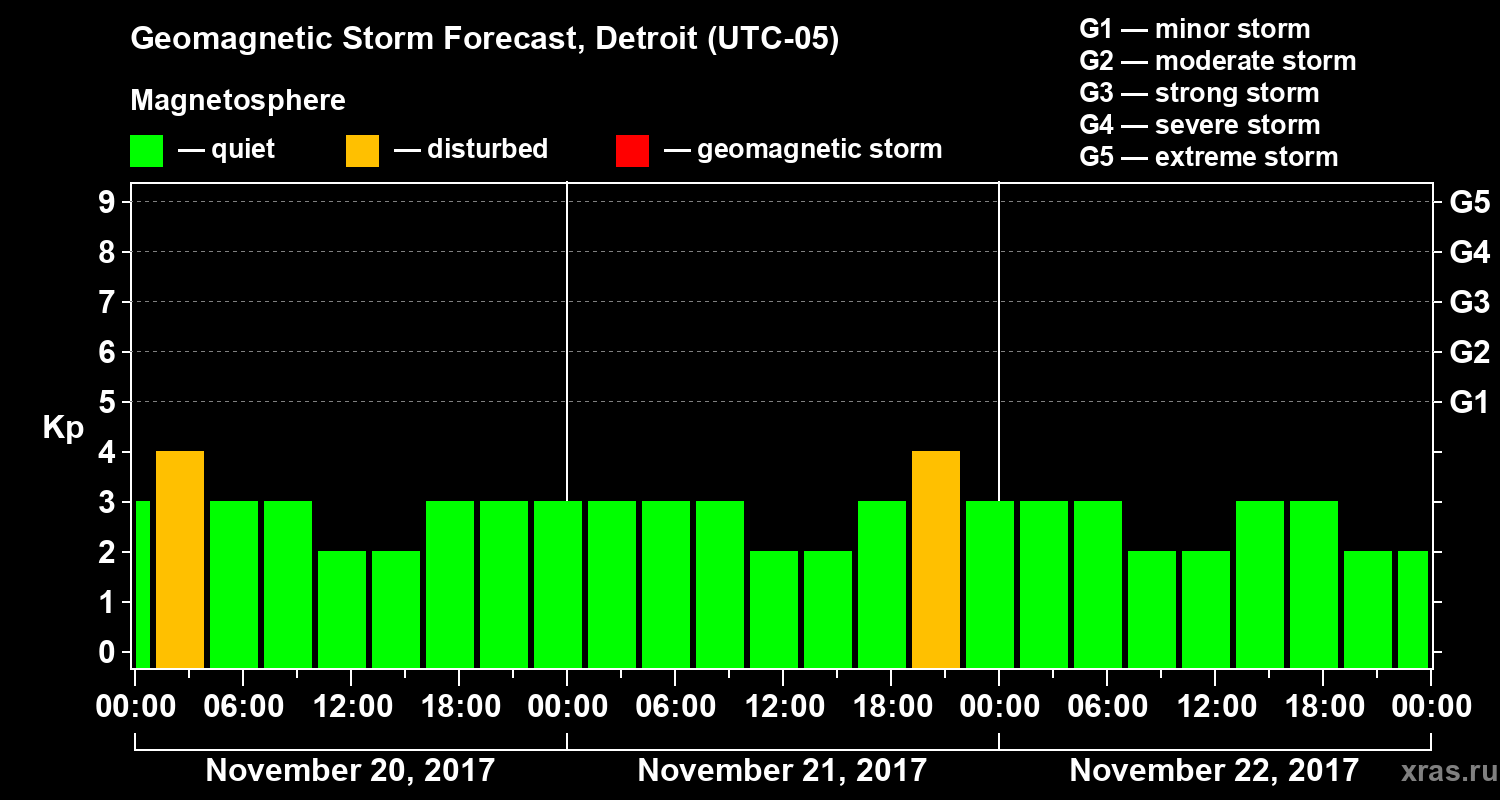 Geomagnetic storm forecast in Detroit for Nov 20, 2017