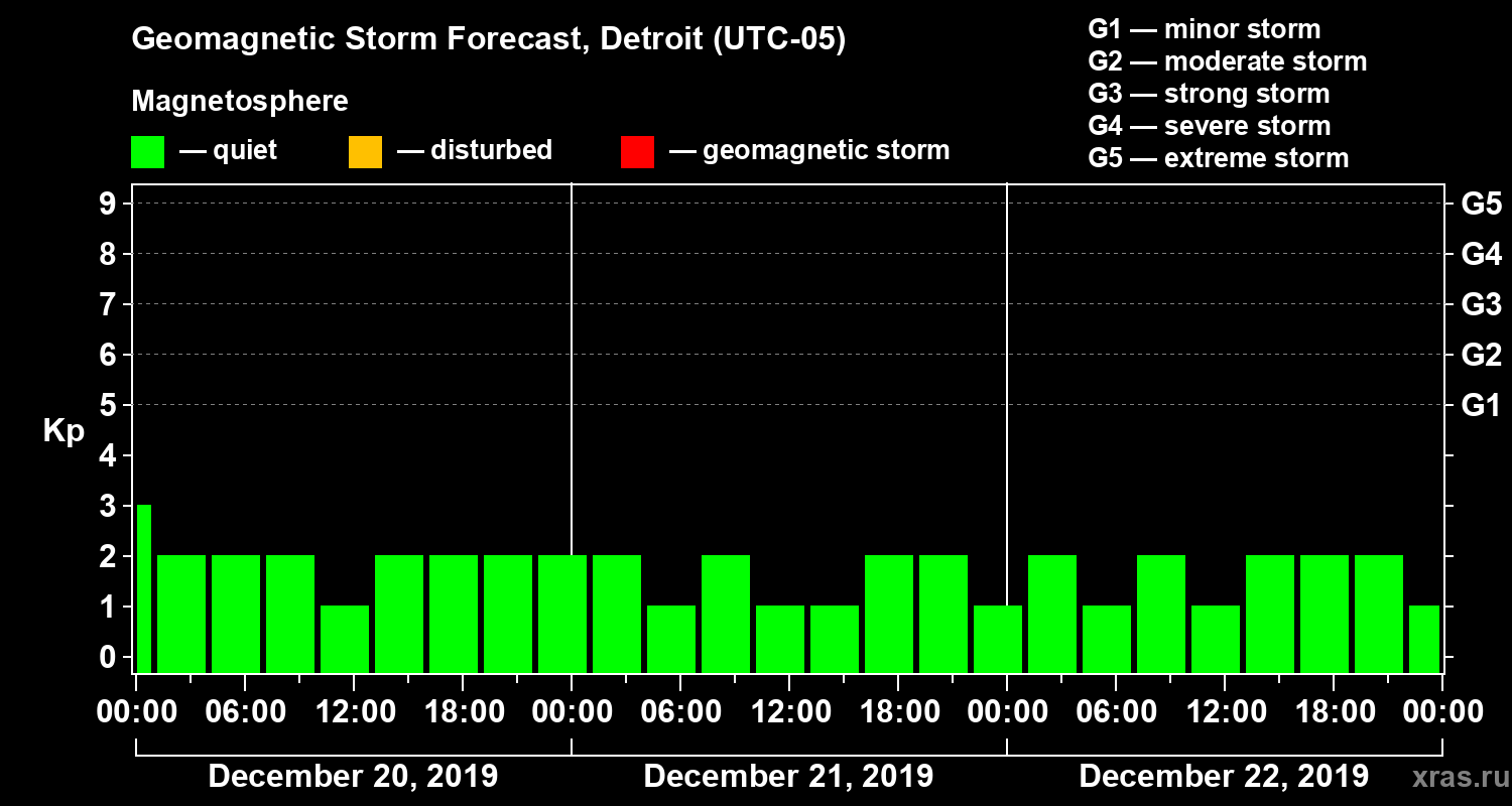Geomagnetic storm forecast in Detroit for Dec 20, 2019