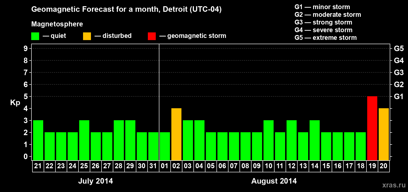 Geomagnetic storm forecast in Detroit for Jul 21, 2014