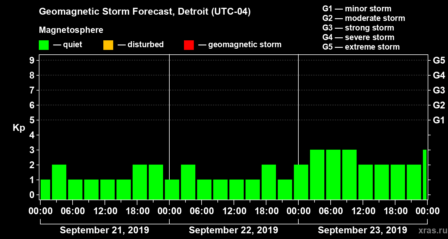 Geomagnetic storm forecast in Detroit for Sep 21, 2019