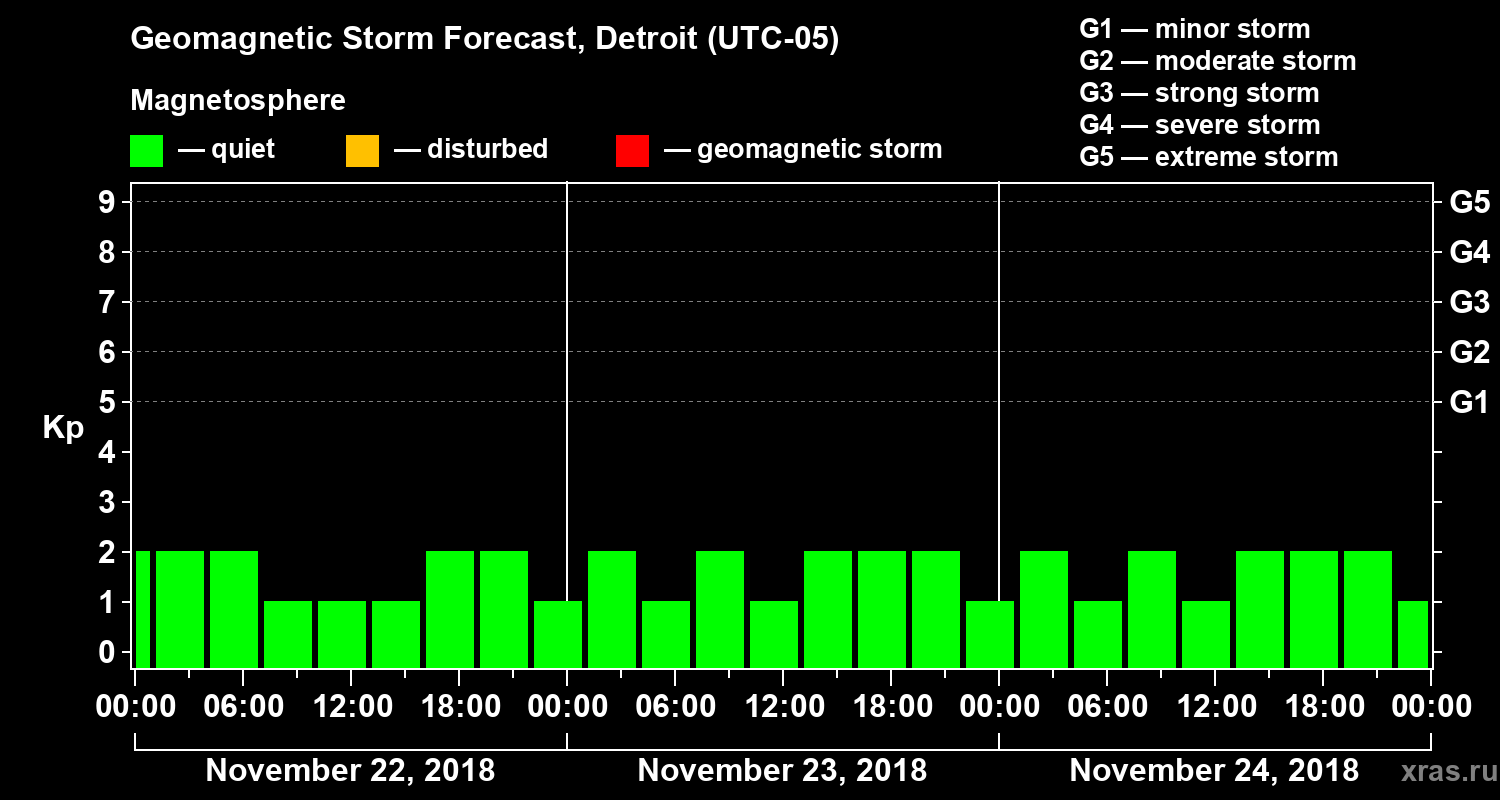 Geomagnetic storm forecast in Detroit for Nov 22, 2018