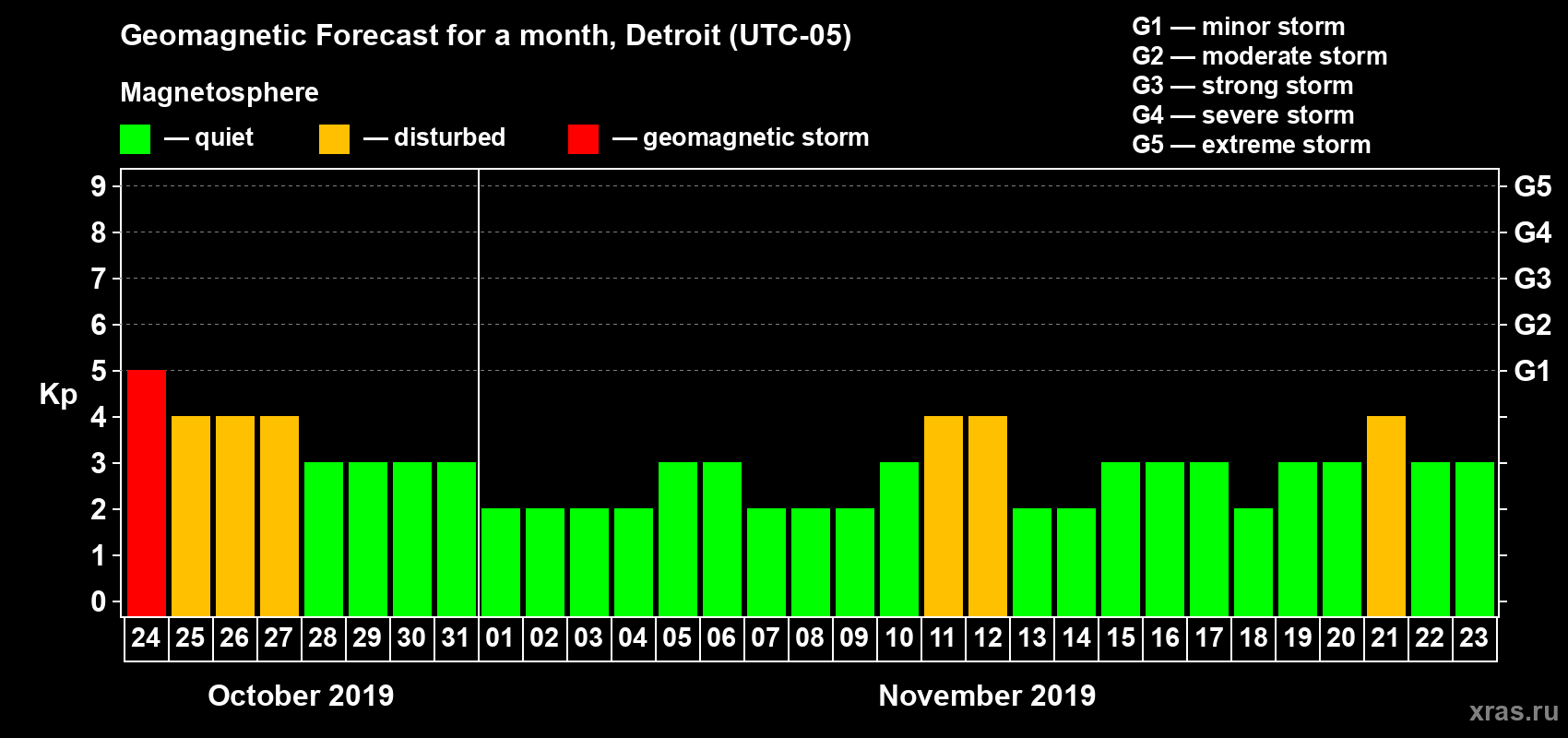 Geomagnetic storm forecast in Detroit for Oct 24, 2019