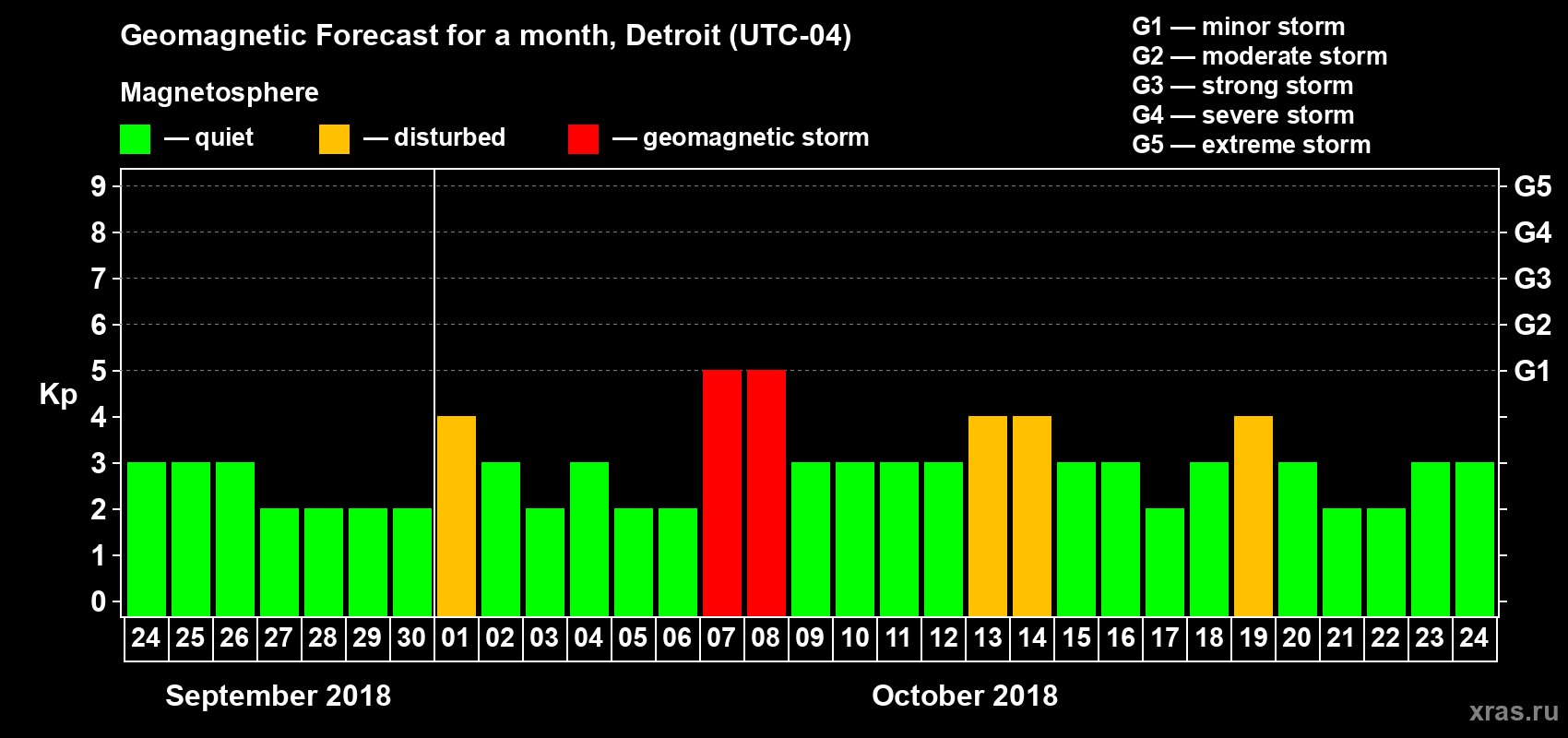 Geomagnetic storm forecast in Detroit for Sep 24, 2018