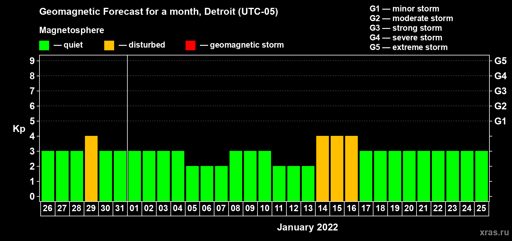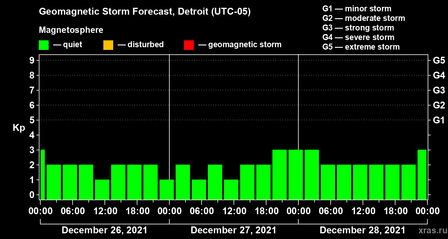 Geomagnetic storm forecast in Detroit for Dec 26, 2021