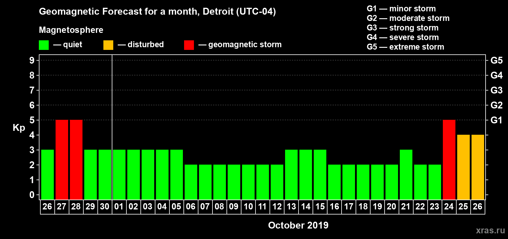 Geomagnetic storm forecast in Detroit for Sep 26, 2019