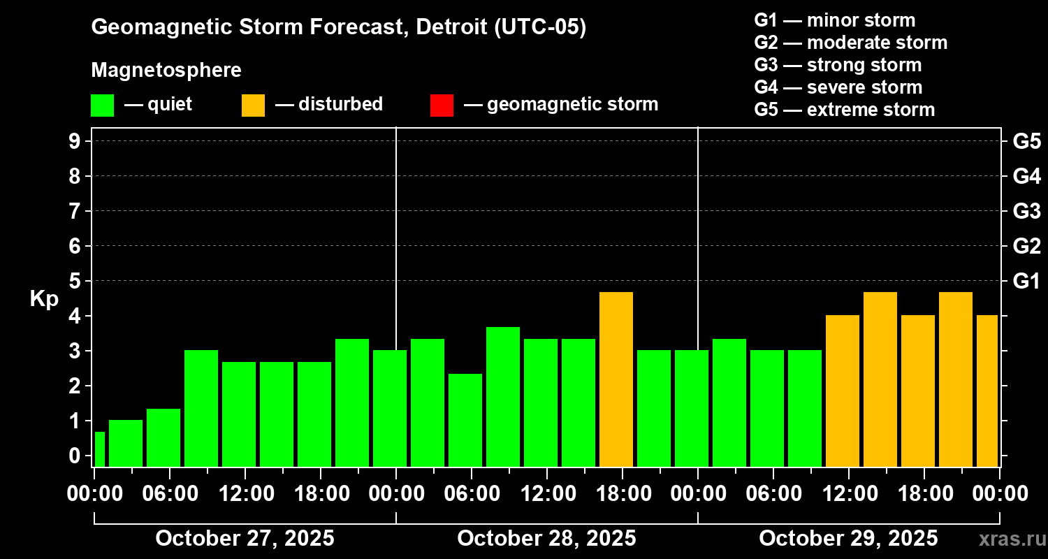 Geomagnetic storm forecast in Detroit for Oct 27, 2025