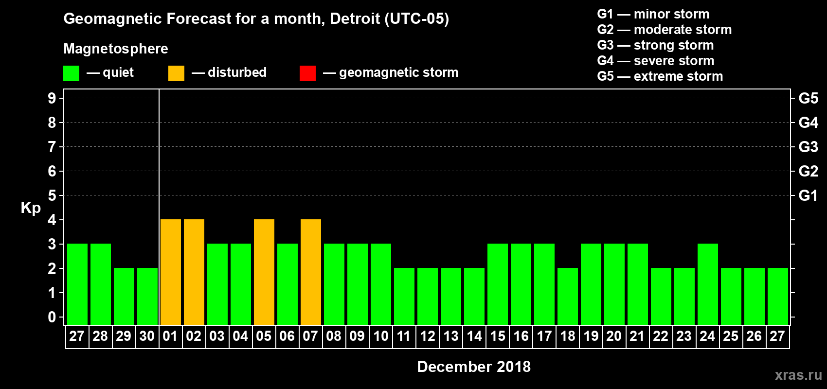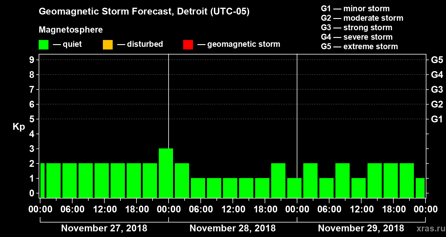 Geomagnetic storm forecast in Detroit for Nov 27, 2018
