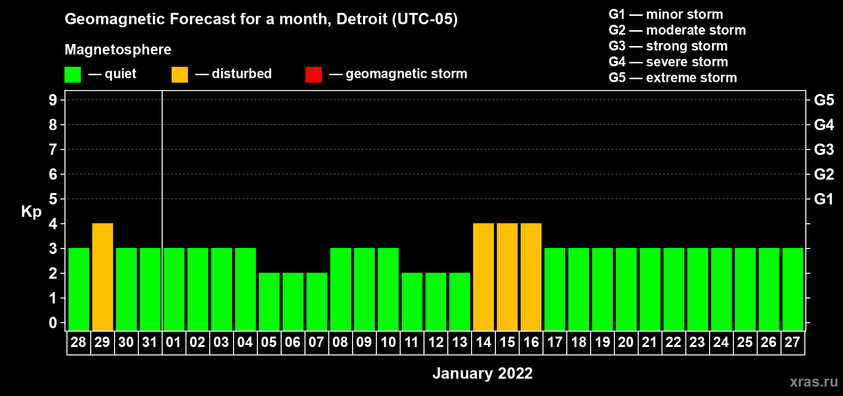 Geomagnetic storm forecast in Detroit for Dec 28, 2021