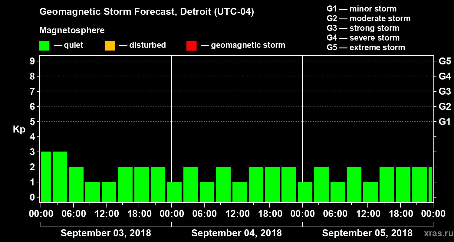 Geomagnetic storm forecast in Detroit for Sep 03, 2018