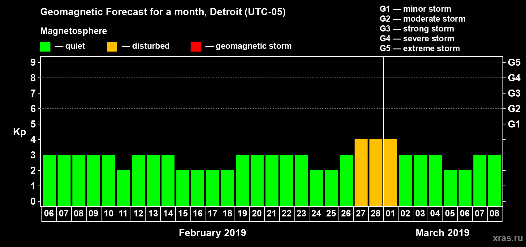 Geomagnetic storm forecast in Detroit for Feb 06, 2019