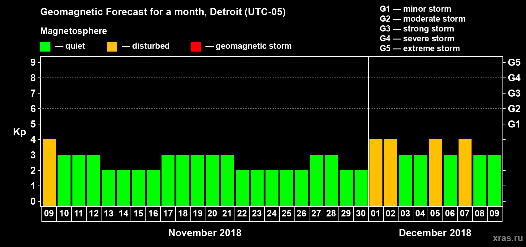 Geomagnetic storm forecast in Detroit for Nov 09, 2018