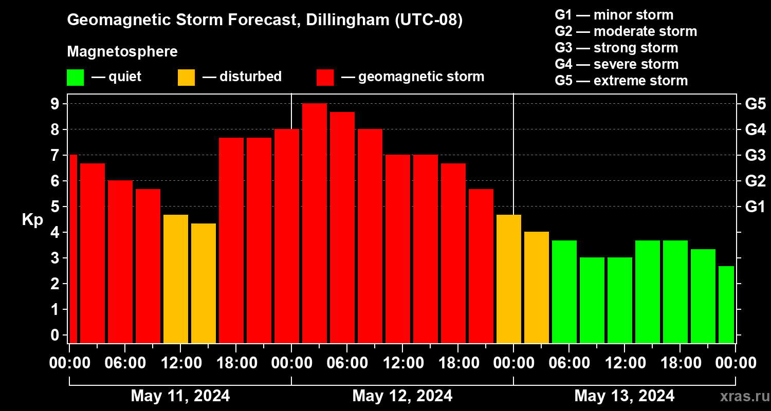 Geomagnetic storm forecast in Dillingham for May 11, 2024
