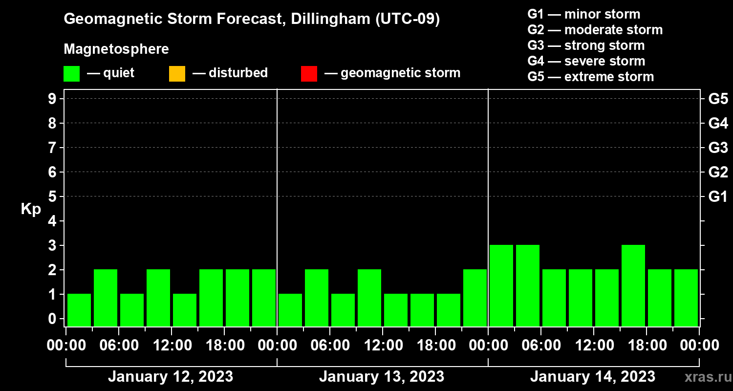 Geomagnetic storm forecast in Dillingham for Jan 12, 2023