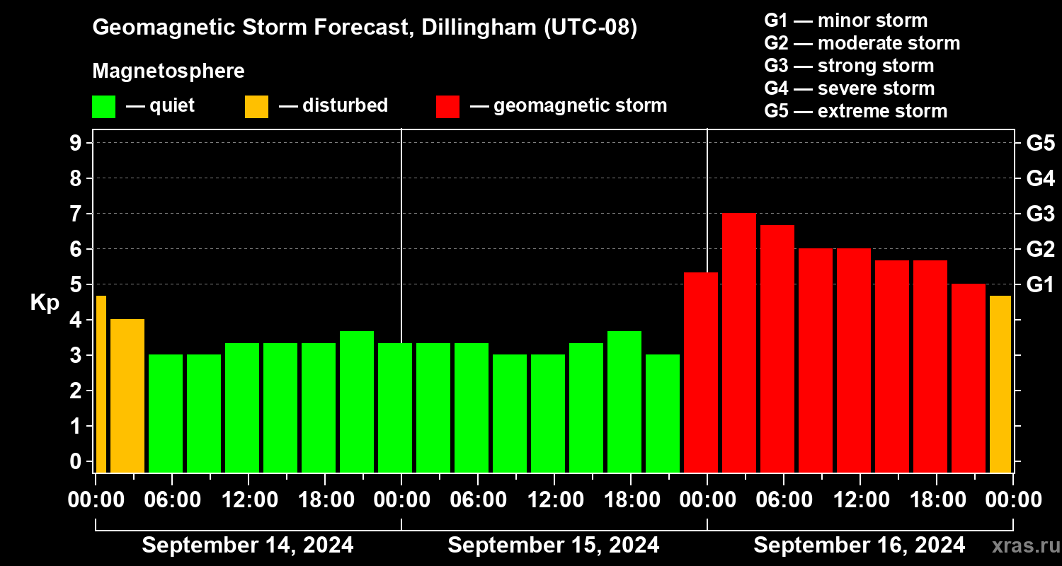Geomagnetic storm forecast in Dillingham for Sep 14, 2024