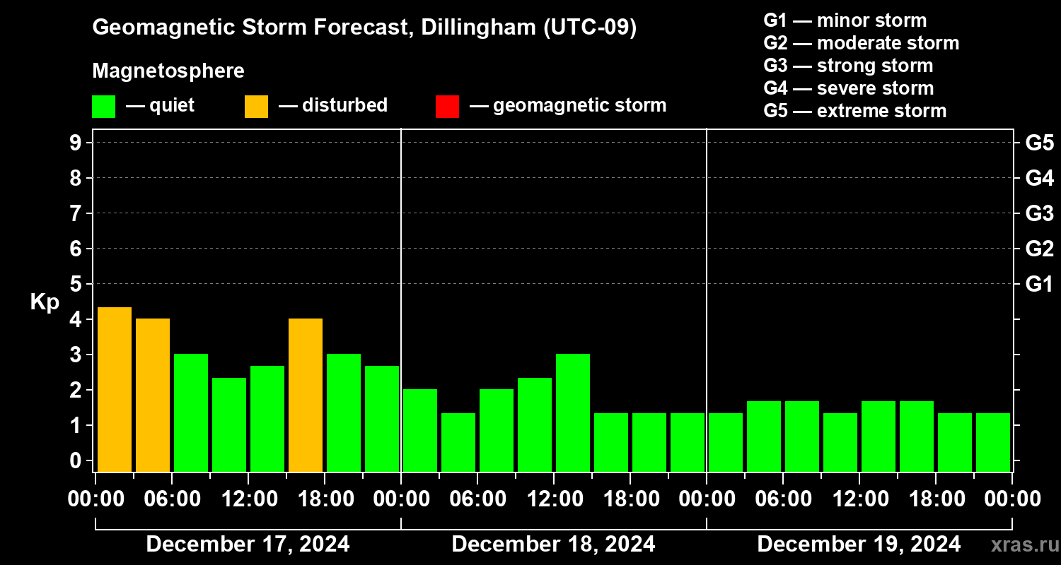 Geomagnetic storm forecast in Dillingham for Dec 17, 2024