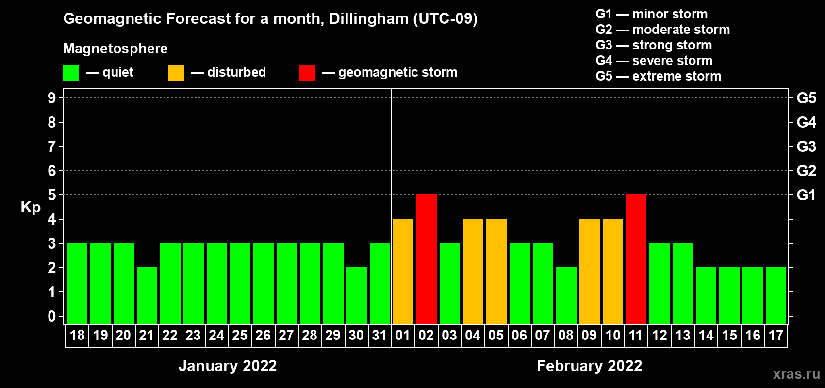Geomagnetic storm forecast in Dillingham for Jan 18, 2022