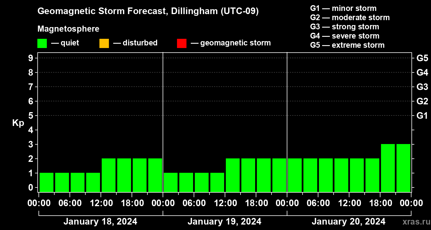 Geomagnetic storm forecast in Dillingham for Jan 18, 2024
