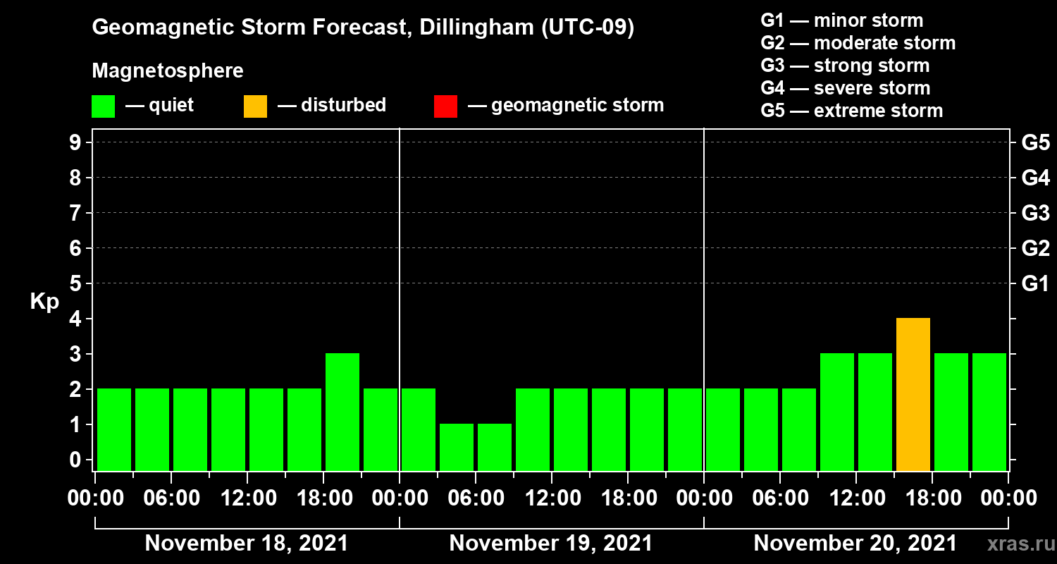Geomagnetic storm forecast in Dillingham for Nov 18, 2021