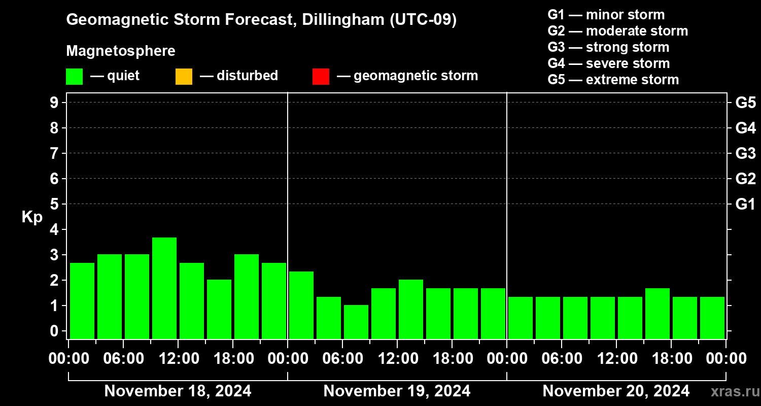 Geomagnetic storm forecast in Dillingham for Nov 18, 2024