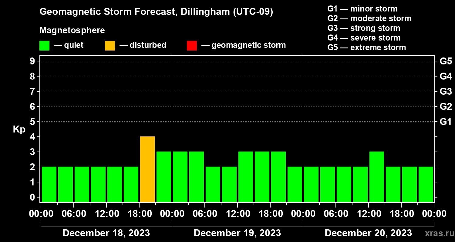 Geomagnetic storm forecast in Dillingham for Dec 18, 2023