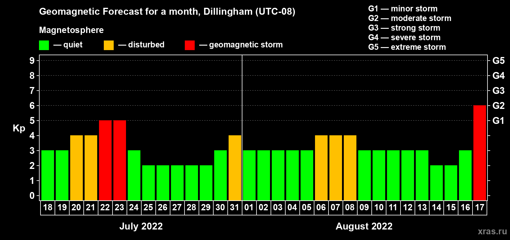 Geomagnetic storm forecast in Dillingham for Jul 18, 2022