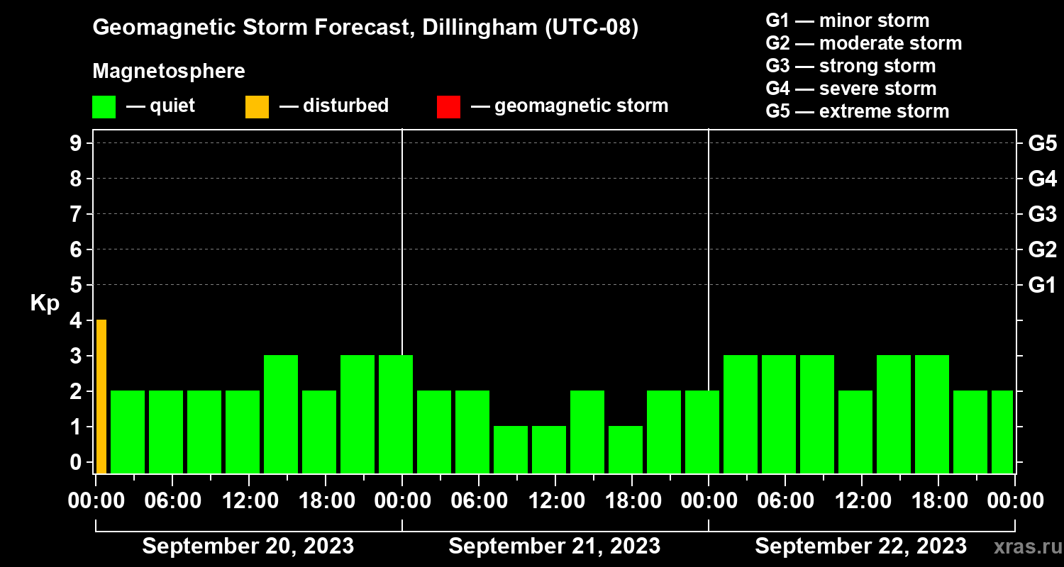 Geomagnetic storm forecast in Dillingham for Sep 20, 2023