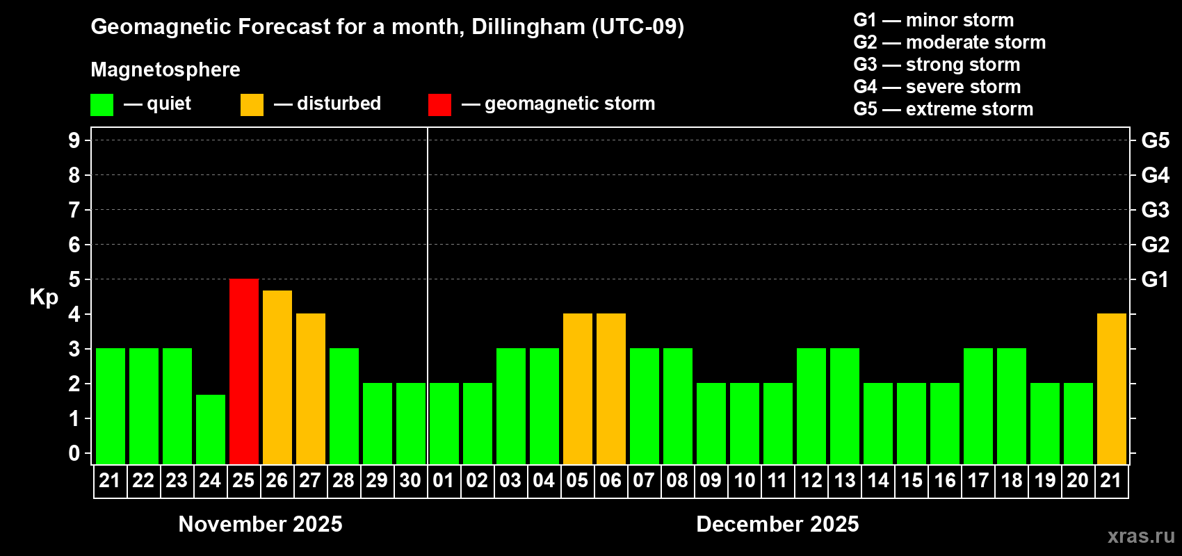 Geomagnetic storm forecast in Dillingham for Nov 21, 2025