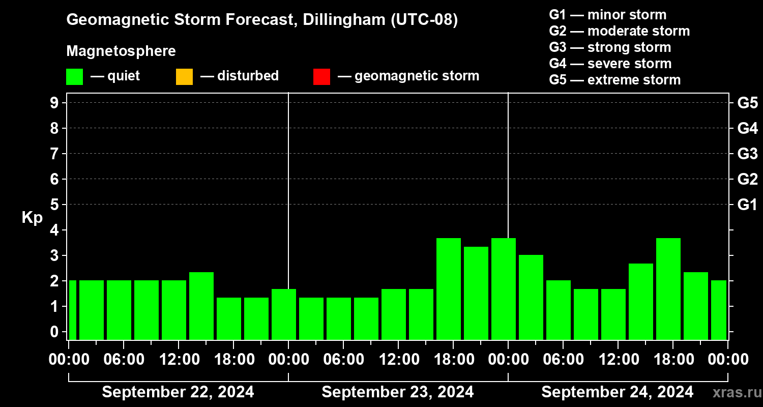 Geomagnetic storm forecast in Dillingham for Sep 22, 2024