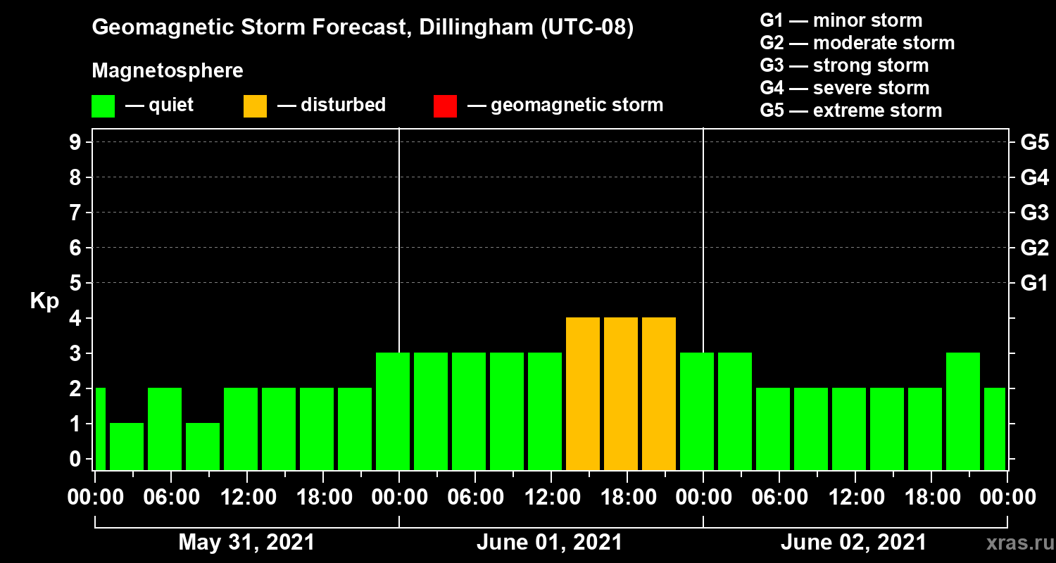 Geomagnetic storm forecast in Dillingham for May 31, 2021