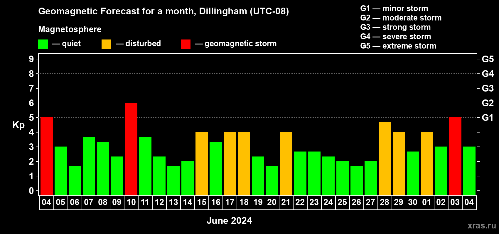 Geomagnetic storm forecast in Dillingham for Jun 04, 2024