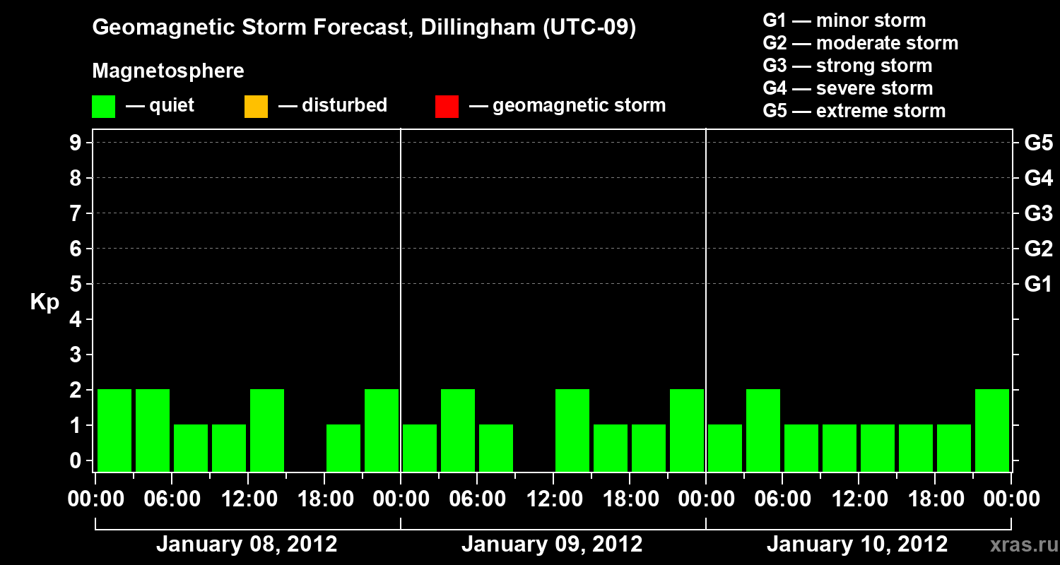 Geomagnetic storm forecast in Dillingham for Jan 08, 2012