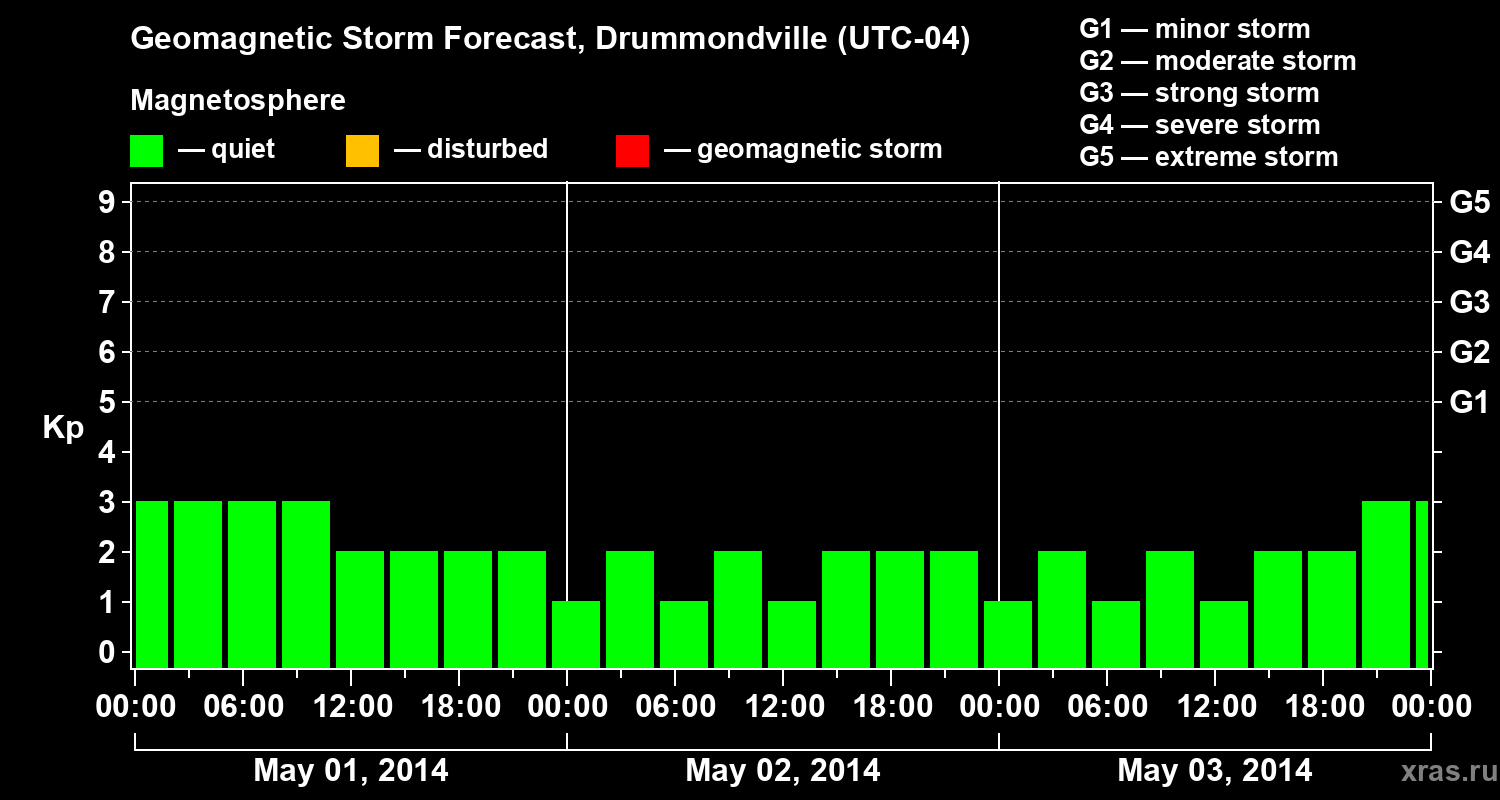 Geomagnetic activity forecast in Drummondville — May 01, 2014