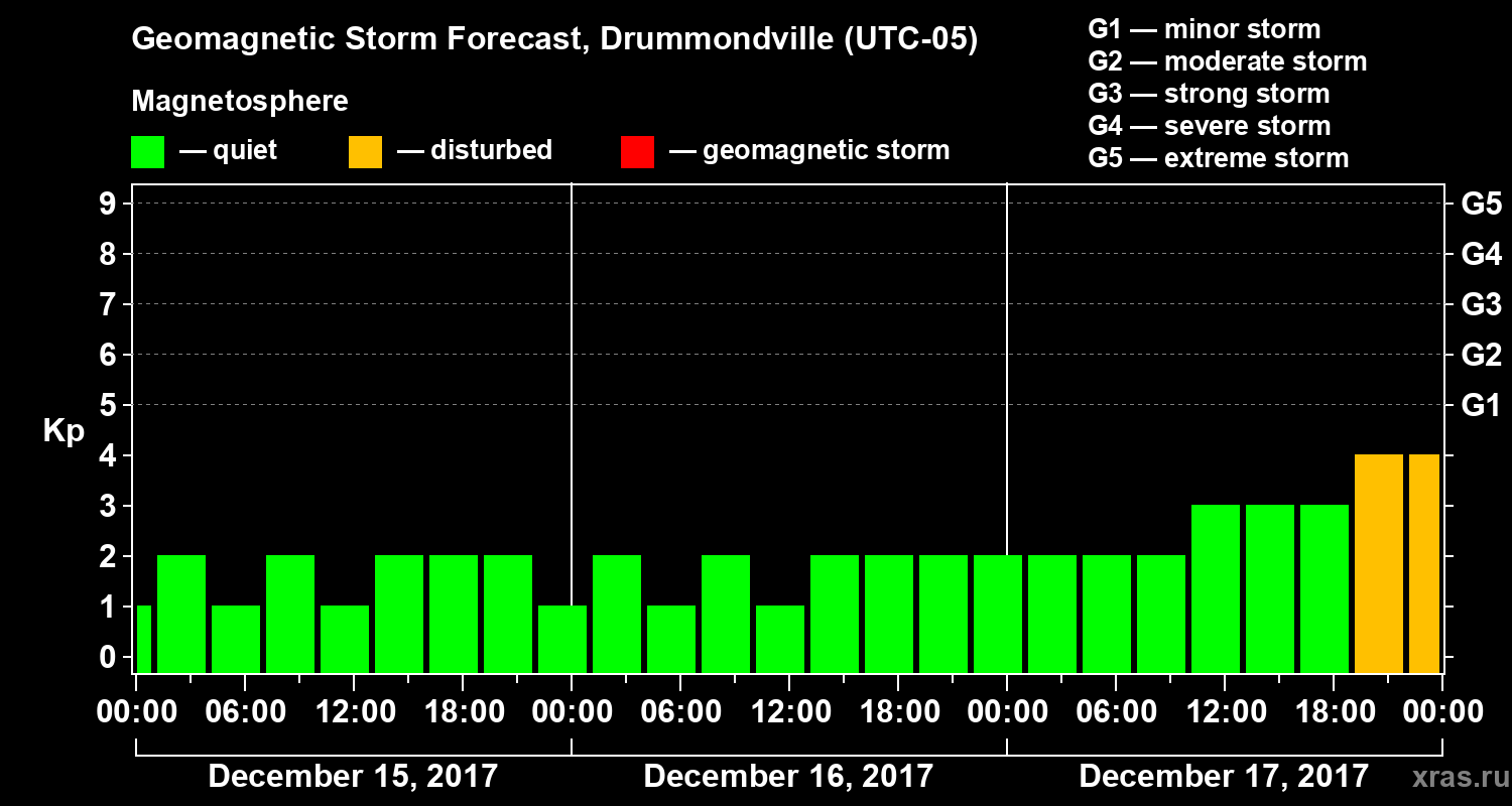 Geomagnetic storm forecast in Drummondville for Dec 15, 2017