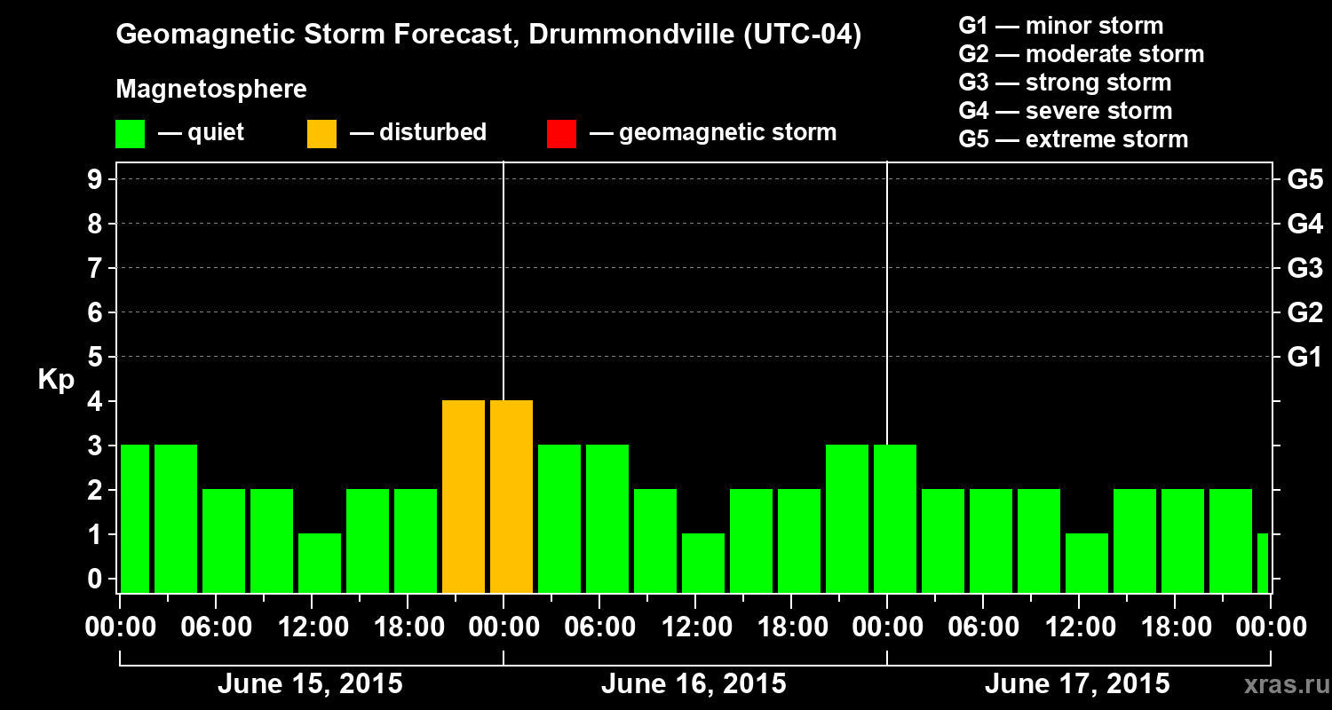 Geomagnetic storm forecast in Drummondville for Jun 15, 2015