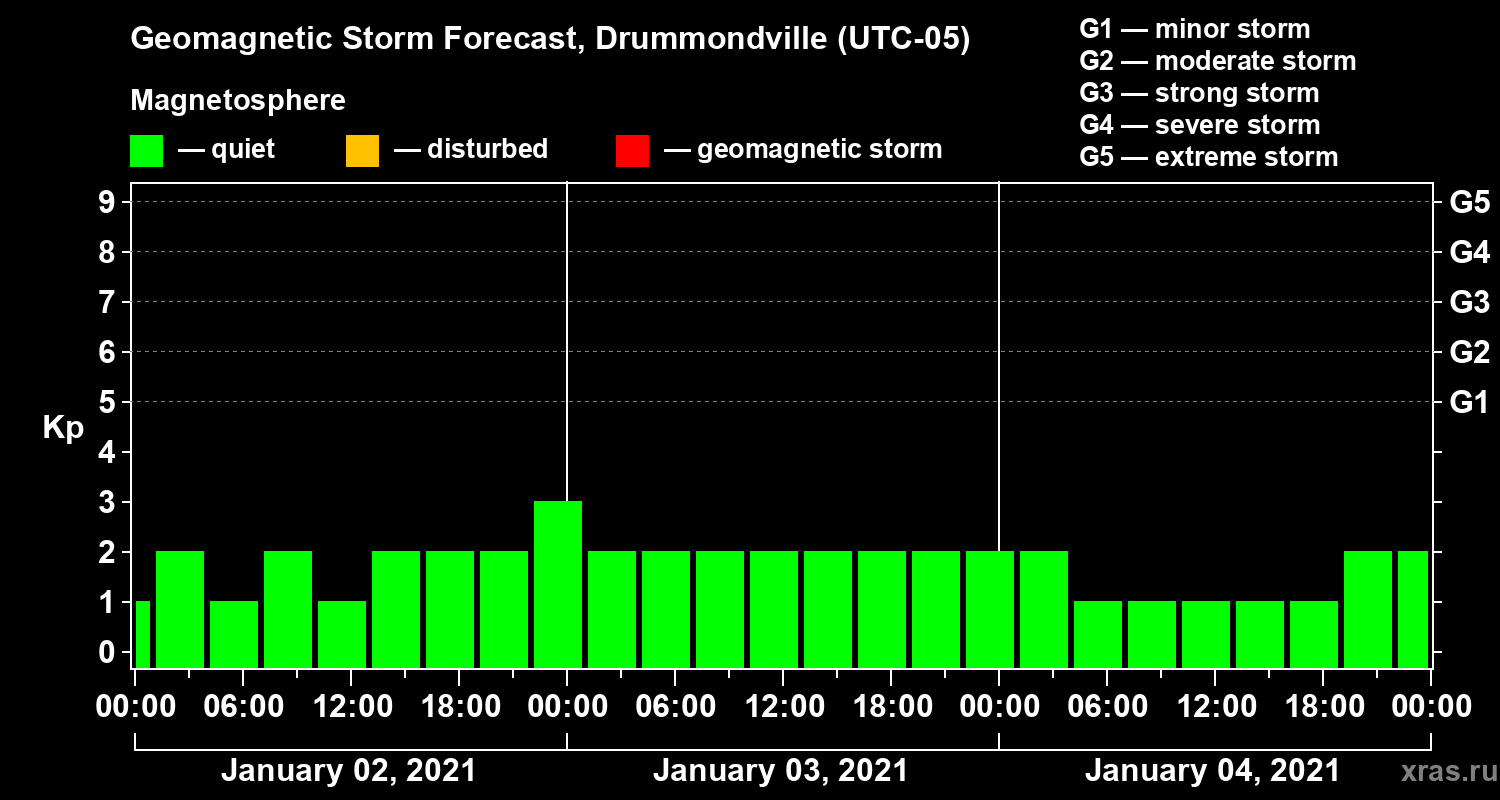 Geomagnetic activity forecast in Drummondville — Jan 02, 2021