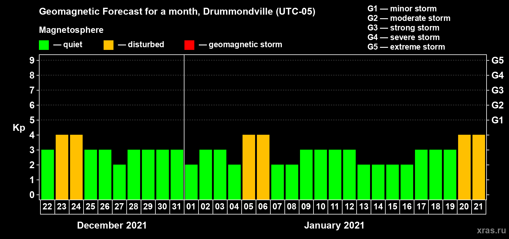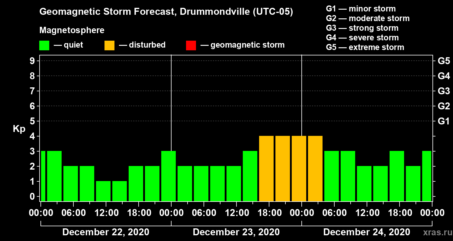 Geomagnetic activity forecast in Drummondville — Dec 22, 2020