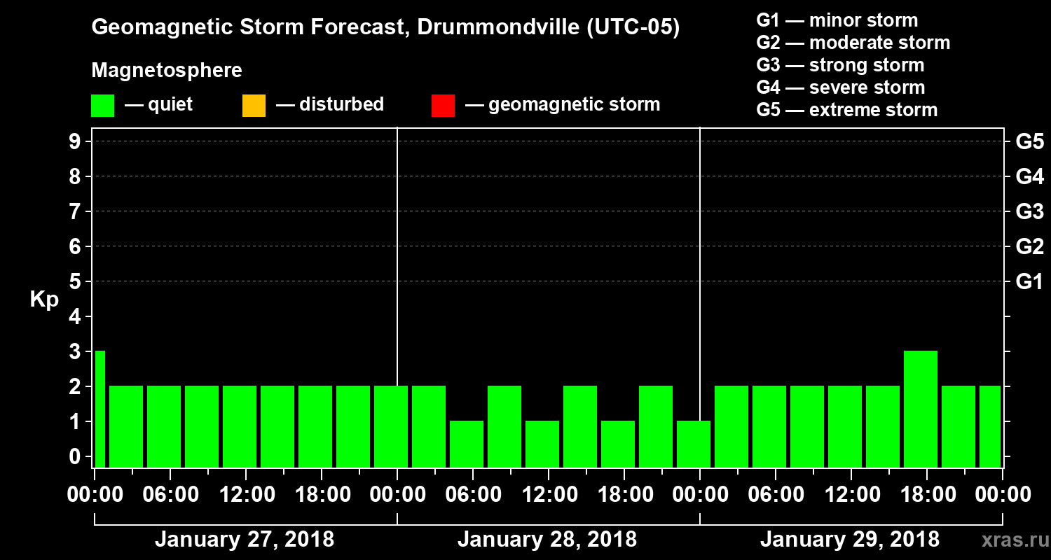 Geomagnetic storm forecast in Drummondville for Jan 27, 2018
