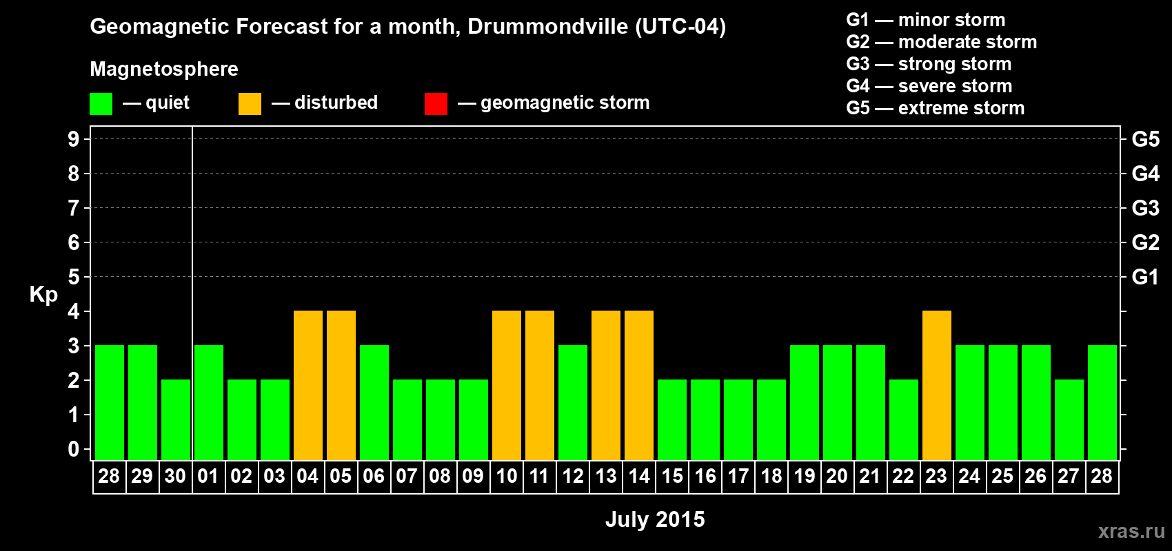 Geomagnetic storm forecast in Drummondville for Jun 28, 2015